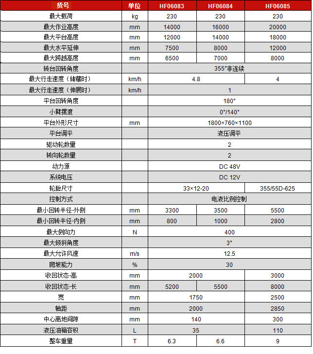 自動調平工作平臺液壓旋轉工作平臺霍爾效應全比例控制器行駛確認AC電源線接至工作平臺喇叭計時器傾斜警報全時正牽引驅動雙速行駛馬達應急泵CAN總線智能控制超載限制選配特征2.4m平臺籃擺動軸工作平臺旋轉門工作平臺備用杠桿焊機預接組件焊接線接至工作平臺空氣管接至工作平臺液壓油冷卻器惡劣環(huán)境套件航空防撞組件工具托盤警報套件平臺工作燈